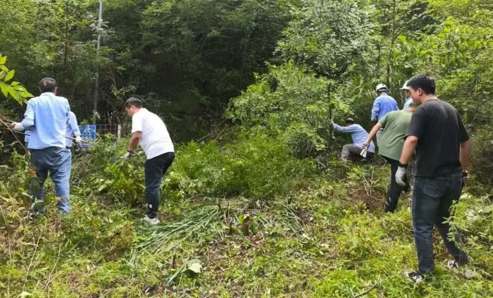 因長期停用,炸藥庫周邊雜草叢生、灌木密布,部分區(qū)域雜草高達兩米,不僅影響安全巡查,還存在多種風(fēng)險。現(xiàn)場,職工們手持割草機、鐮刀、鐵鍬等工具,分工協(xié)作:年輕職工主動承擔割草、砍伐重任,老員工則負責(zé)理碎石、搬運雜物,黨員先鋒們更是一馬當先,帶頭攻堅復(fù)雜區(qū)域。盡管汗水浸透工裝,雙手磨出水泡,但無人喊苦叫累,展現(xiàn)出強大的團隊凝聚力。